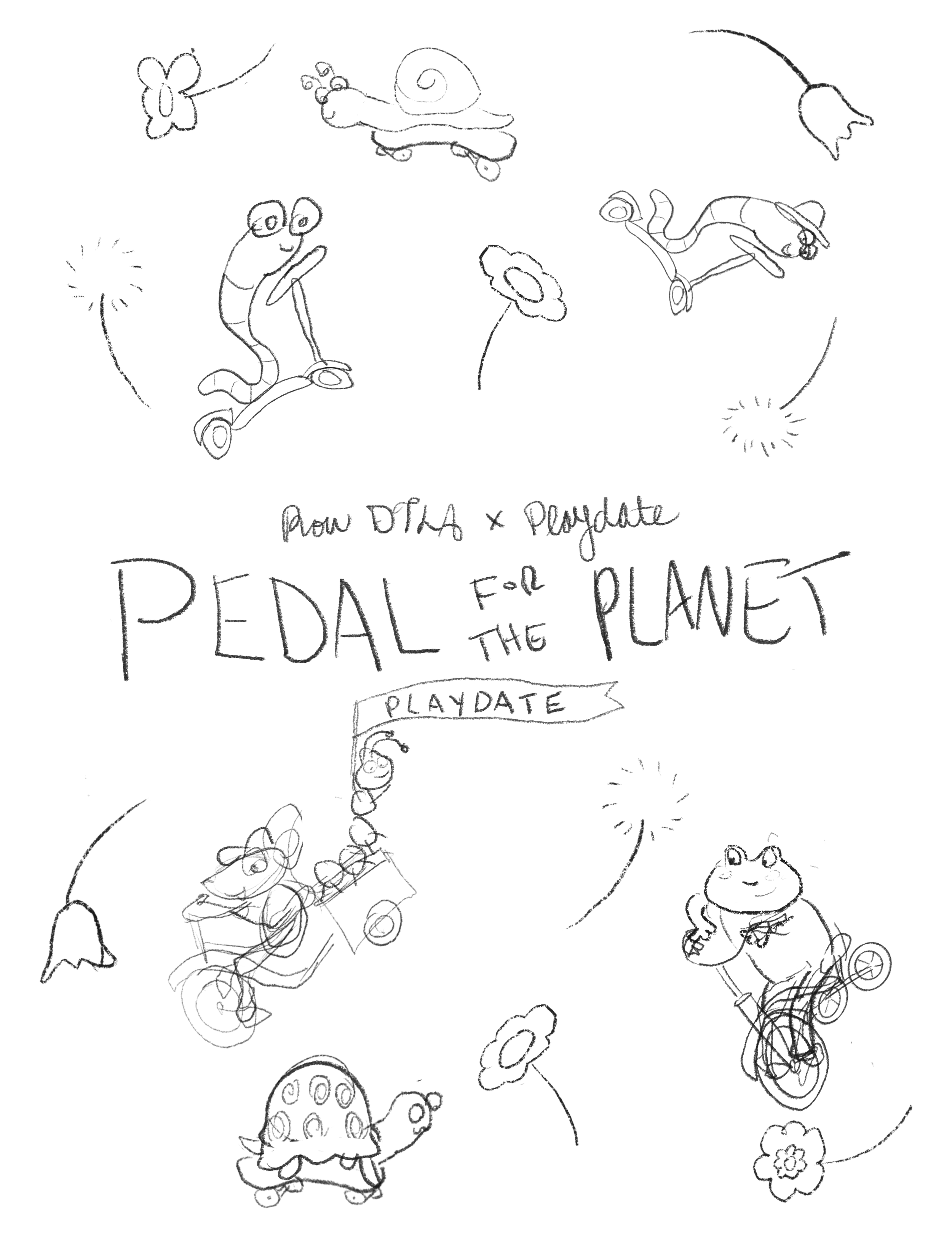 Illustrated event poster, map, and map icons for Playdate x RowDTLA Pedal for the Planet event in Los Angeles. Illustrations were used for printed signage and maps and digitally on social.